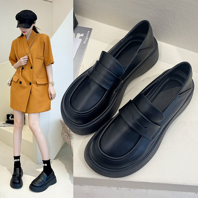 厚底ローファー女性 2025 新しい初秋夏英国スタイルの小さな革靴黒のシングルシューズメリージェーンの女性の靴