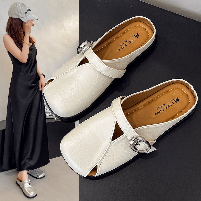 包頭ハーフスリッパ女性の夏のアウターウェア 2025 新しいスタイル超人気のハイエンドスカート付きスリッポンスリッポンサンダル