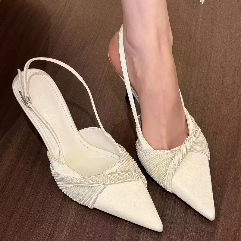 フレンチスタイルの優しい気質の女性用ポインテッドトゥスティレットハイヒール2025春の新作ファッションバックストラップ浅い口のシングルシューズトレンディ