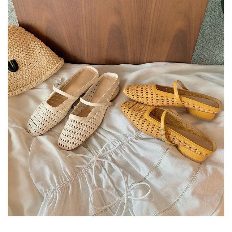 レトロな織り中空包頭ミュールスリッパサンダル女性の夏のストラップハーフ 2025 新しい夏