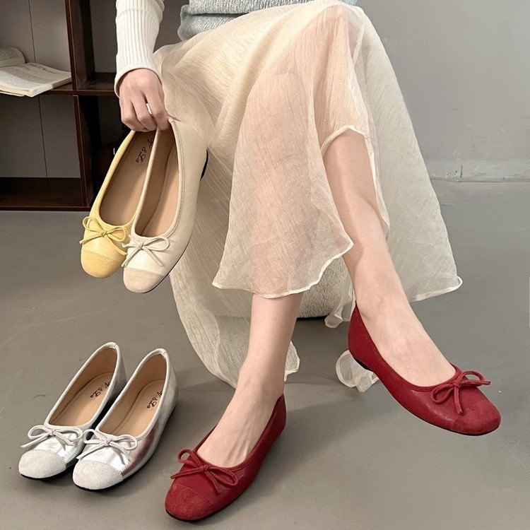 フレンチフラットシューズバレエシューズ2025春浅口キャンディーカラービーニーシューズおばあちゃんの靴ソフトソールイブニングシューズ