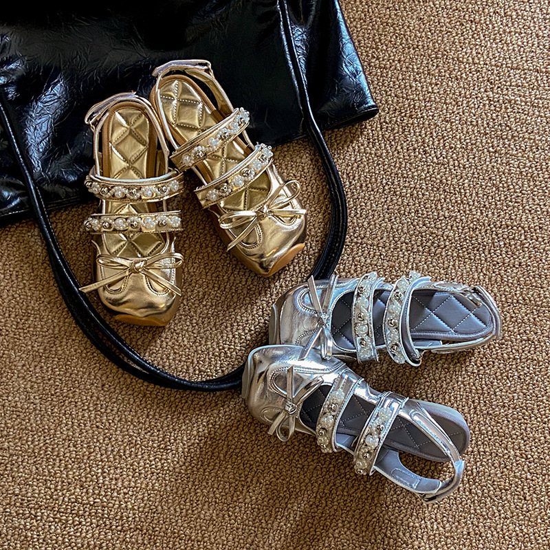 フレンチバレエファンタジーフラット浅口メリージェーンシューズレディースサマーリボンスイートバックエアトゥサンダル