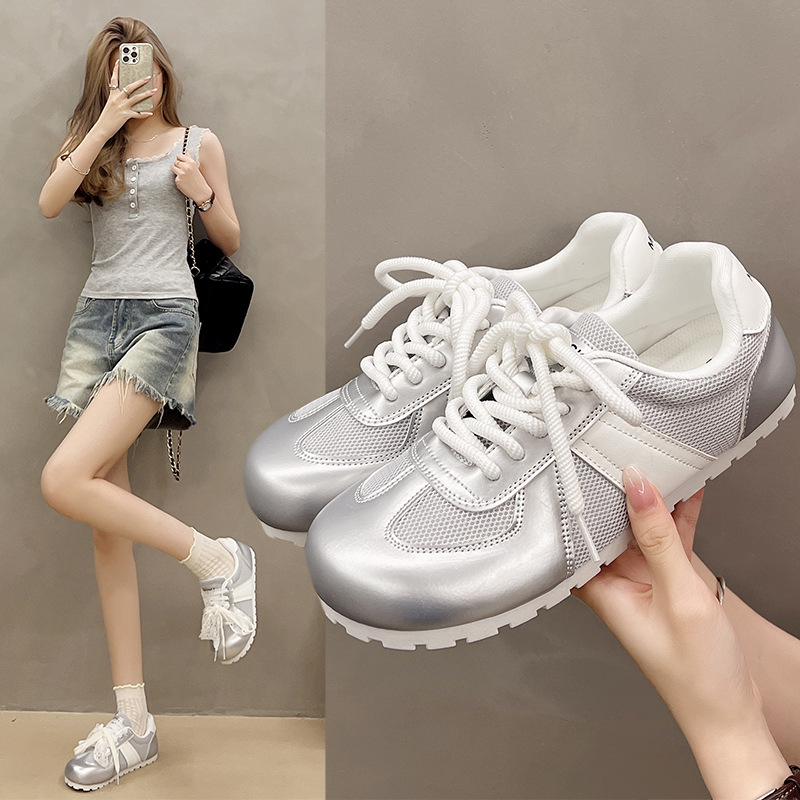 女性用厚底道徳訓練靴、メッシュ通気性、2025年夏新作ニッチ多用途フォレスト・ガンプシューズ、女性用スポーツカジュアルシューズ