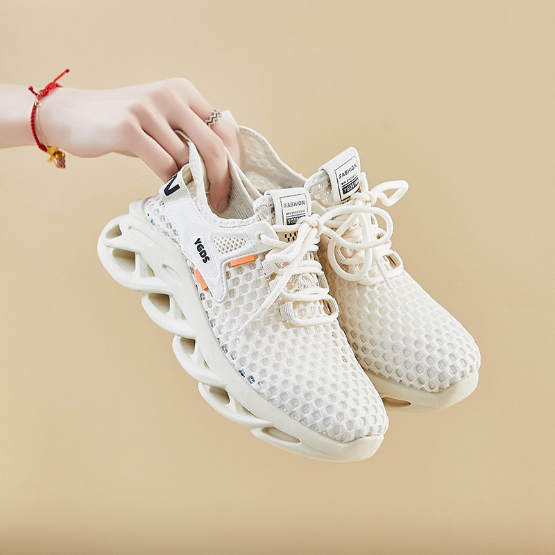 女性用の人気のスポーツメッシュシューズ、通気性のあるメッシュ2025新しい夏の薄い中空カップルスタイルのココナッツランニングシューズ