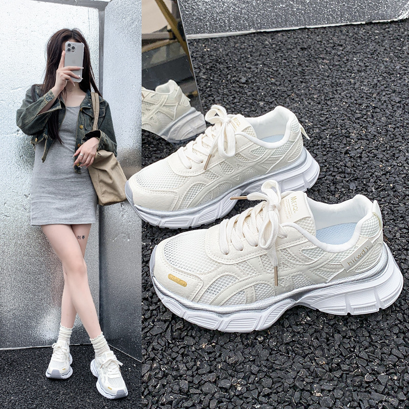 女性用厚底ダッドシューズ 2025 新作夏人気メッシュ通気性カジュアルシューズ多用途軽量スポーツシューズ