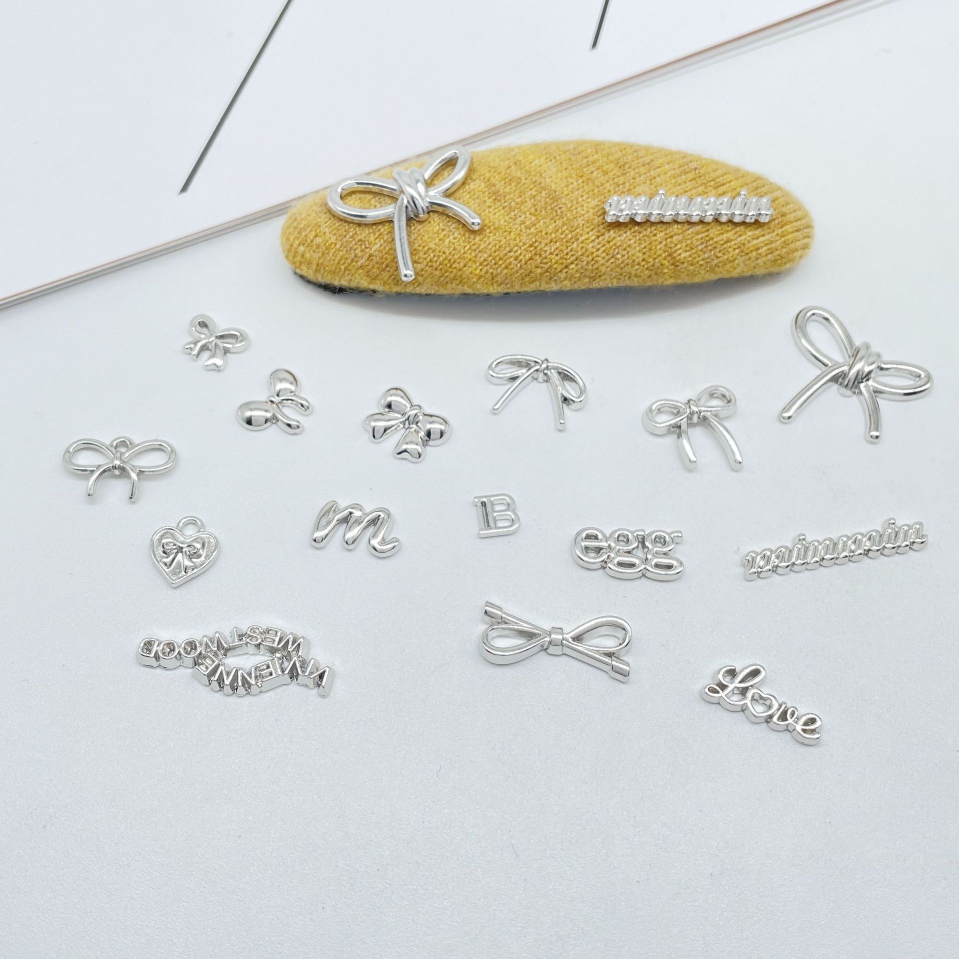 新しい電気メッキブライトシルバーリボンレター愛合金パッチペンダント diy ヘアピンブレスレットイヤリングアクセサリー