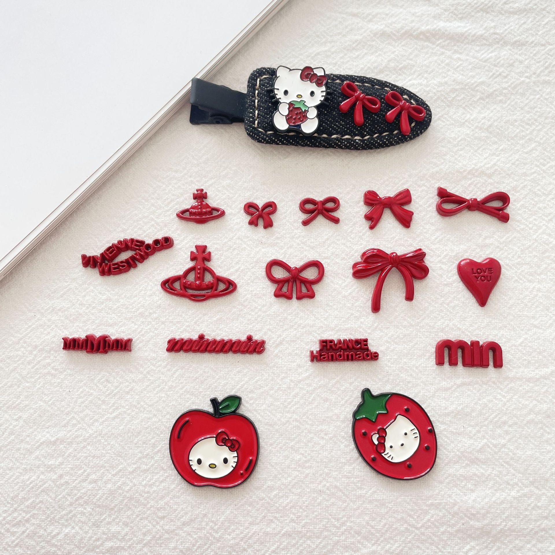 ホット販売弓手紙愛漫画猫フルーツ kt 赤合金パッチ diy ヘアピン頭飾り素材