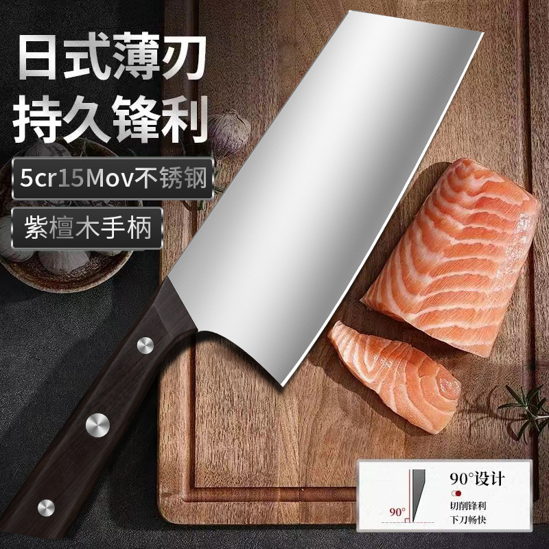 5cr超薄型カッティングナイフ超シャープステンレス小型家庭用日本式女性包丁紫檀木