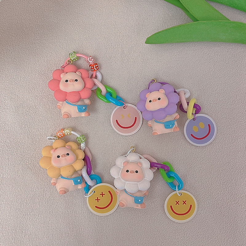 超かわいい太陽の花のブタのキーホルダーのペンダントの創意的な漫画の少女の心の樹脂の公仔の自動車のカバンの装飾品