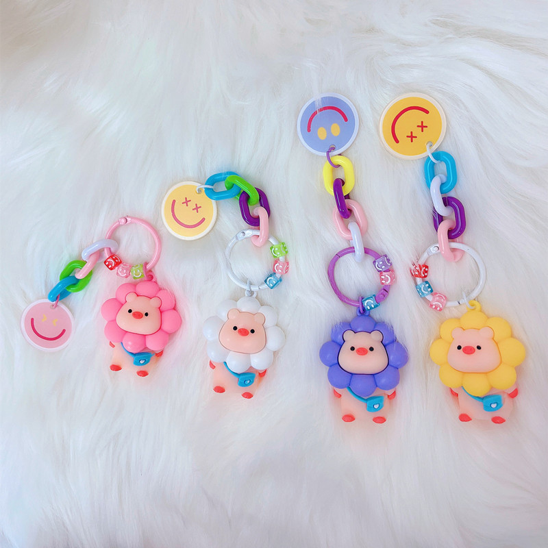 Insアニメの太陽の花の豚のキーホルダーのペンダントの柔らかいゴムのかわいいブタの子供の車のキーホルダーのカバンのペンダント