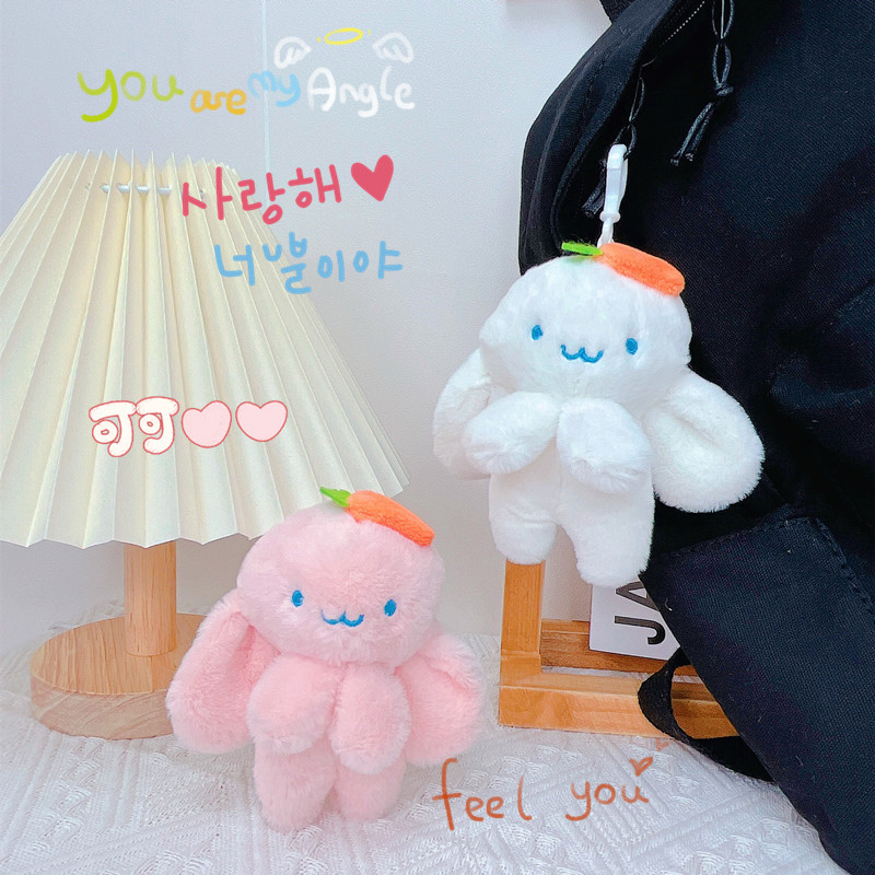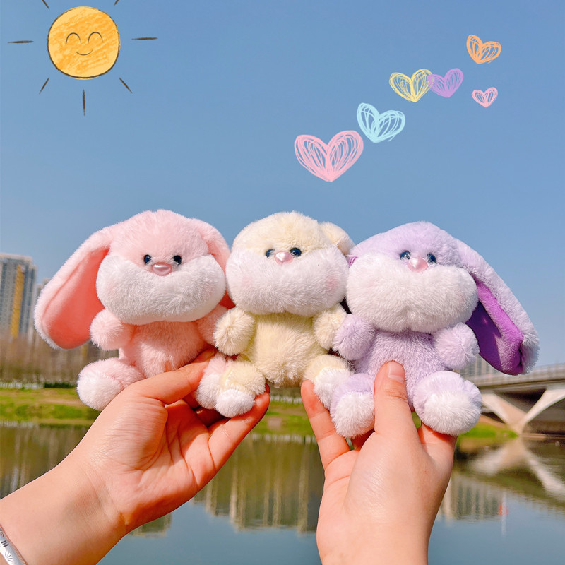 太ったぬいぐるみの長い耳のウサギのペンダントがかわいい少女の心のウサギのキーホルダー
