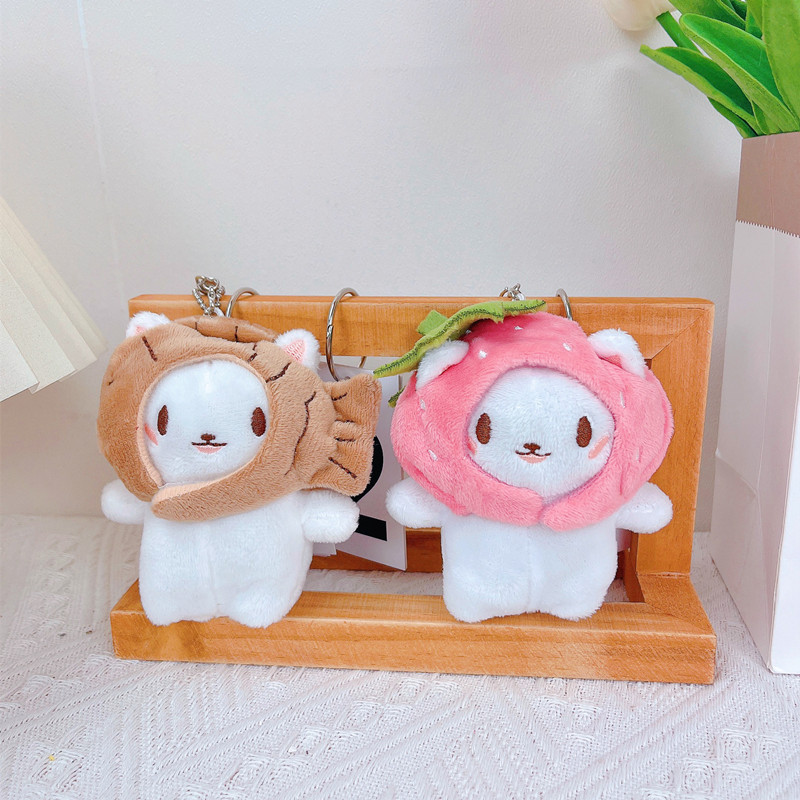 ネット赤ins鯛焼き猫のキーホルダーがかわいいいちごの頭猫のぬいぐるみが飾られている