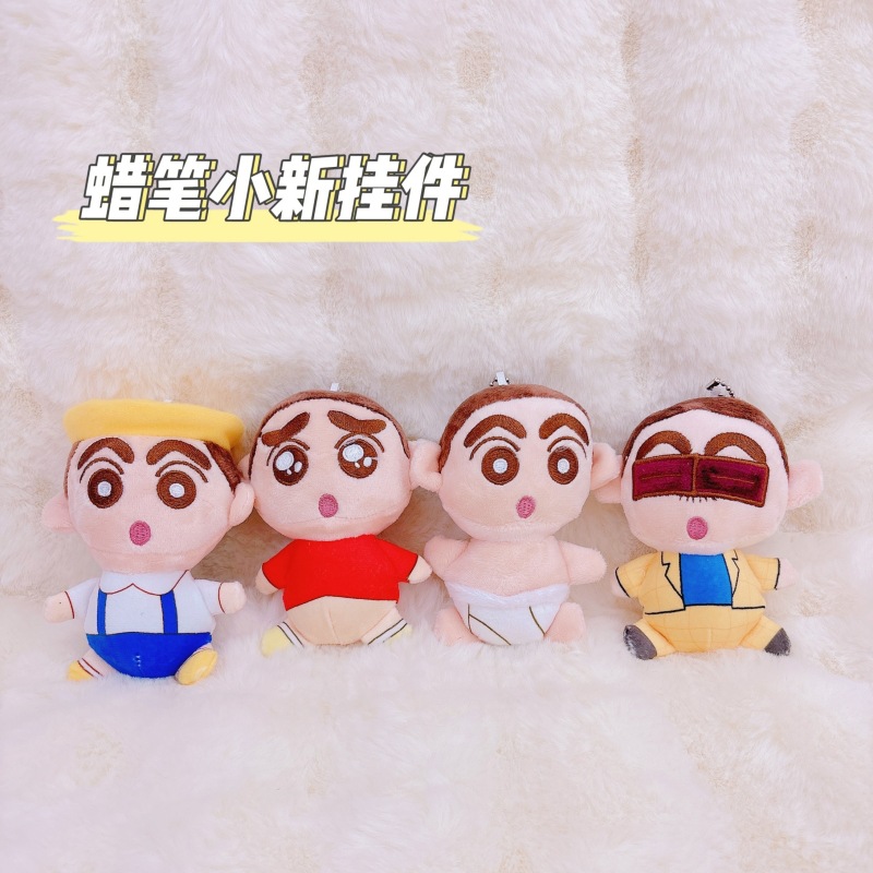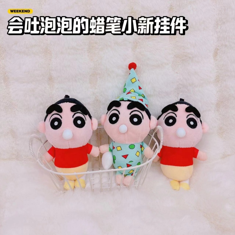 かわいいぬいぐるみのクレヨンしんちゃんのキーホルダーのペンダントがぼうっとしています。