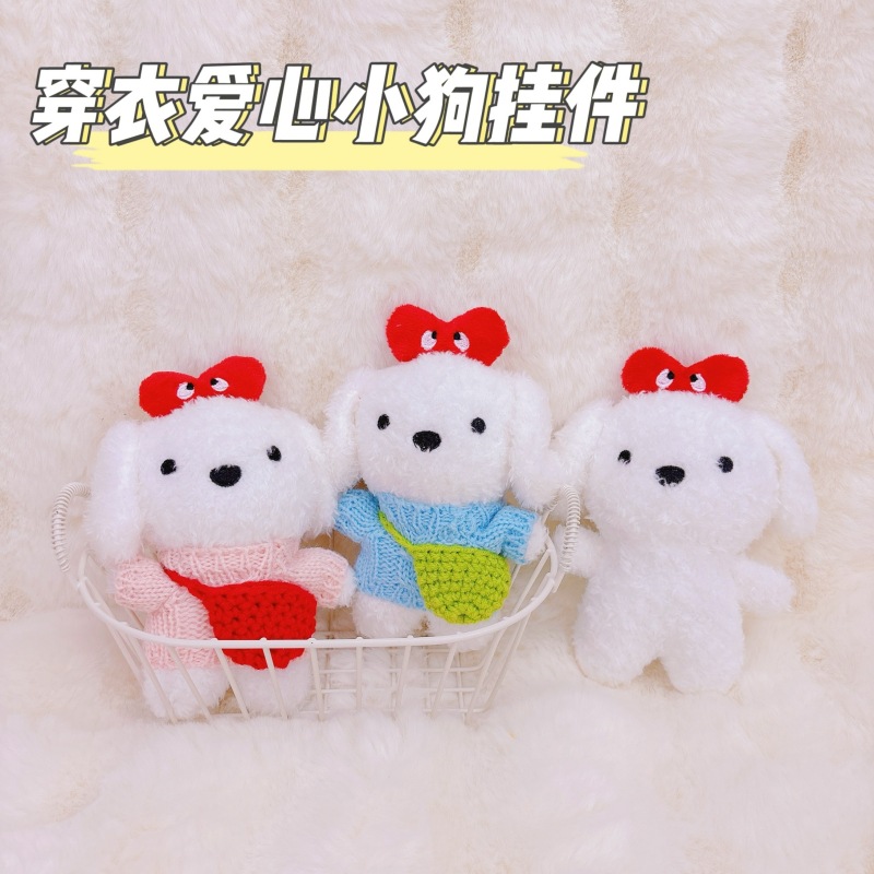 ネットの赤い服の愛の子犬のキーホルダーはかわいい少女の心のショルダーバッグのカップルのカバンを掛けてぬいぐるみを飾ります。