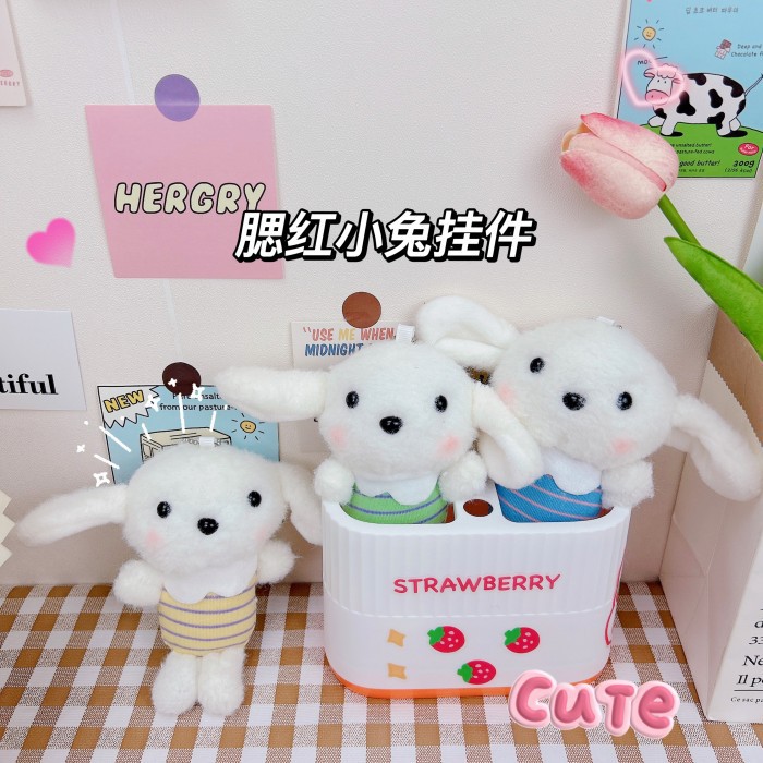 かわいい頬紅のウサギのキーホルダーのアイデアは、人形のぬいぐるみのぬいぐるみのペンダントメーカーの卸売りをつかむ