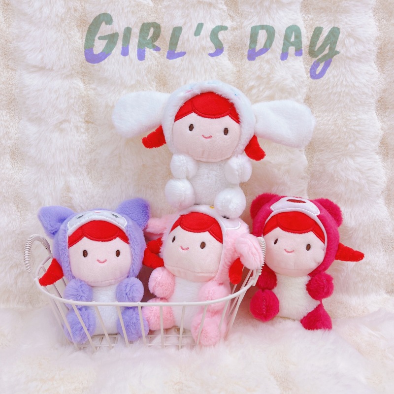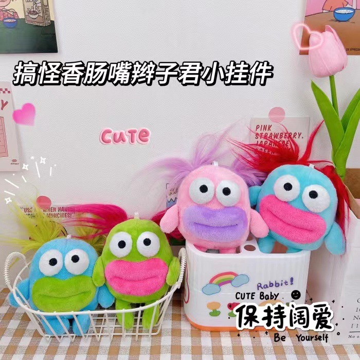 奇妙なソーセージの口のお下げ君のキーホルダーのぬいぐるみがかわいい長髪の大きな目の奇妙なバッグに飾られたプレゼント