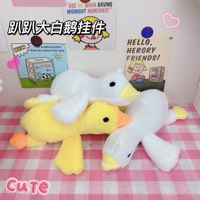 かわいいぬいぐるみが腹ばいになっているガチョウのストラップをお願いします。