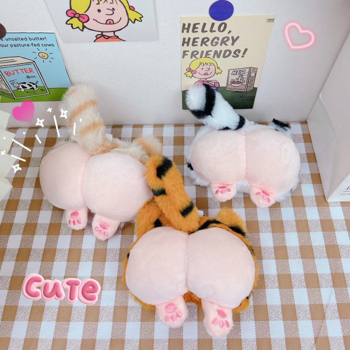 ぬいぐるみのトラのお尻のキーホルダーが可愛いです。