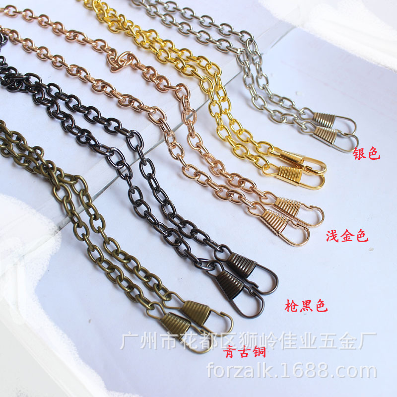 国境を越えた人気バッグと口金バッグチェーンのケース金物部品8mm幅nkフラットチェーンに3点のドアボタンがついている