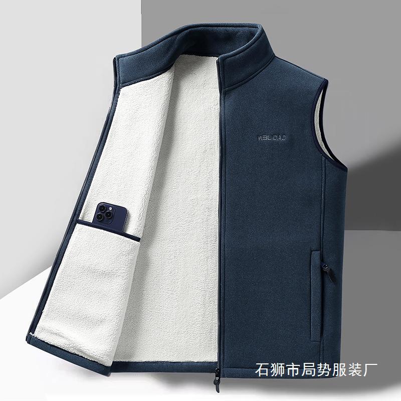 新しい秋冬服の男性のジャケットの羊の小毛の袖なしの百合の保温のフリースのベストの肩のコートの男性