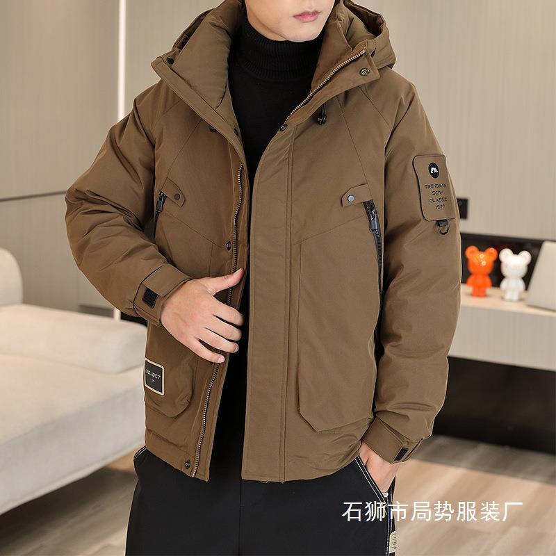 冬の工装ダウンジャケット男性の短いカジュアルなファッションカードのダウンジャケット白鴨パイルは帽子付きの服を厚くした