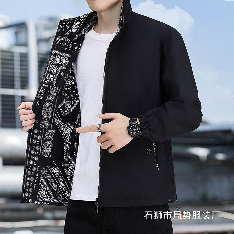 2023新型両面にジャケットを着た男性コート青年カジュアルファッションブランドのゆるい立襟秋コート男性ファッション