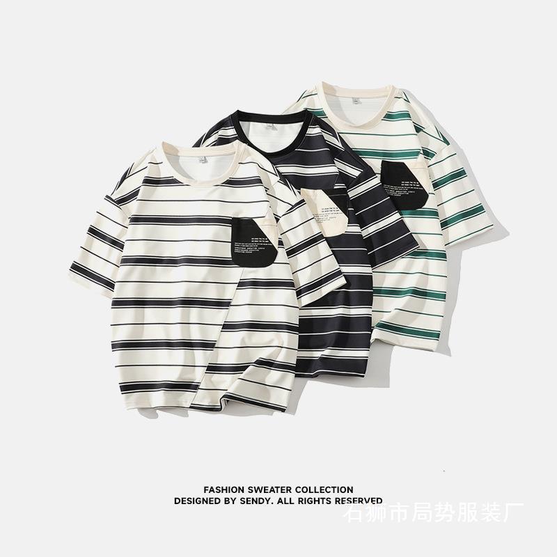 2024日系新型半袖tシャツ男性ストライプ夏ファッションsup海魂服底シャツファッションブランド香港風メンズ
