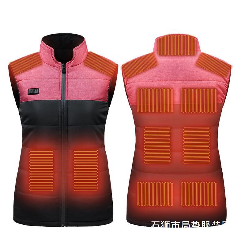 冬のレジャー知能電気加熱発熱馬甲双控多区加熱発熱服男女ベストコートブーム