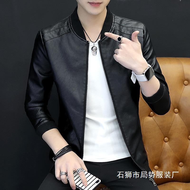 革服男性2023春秋新作革ジャケット韓国版修身機関車服メンズファッションPUコート上着