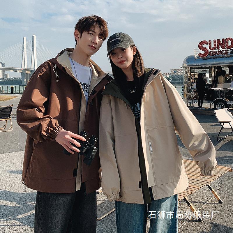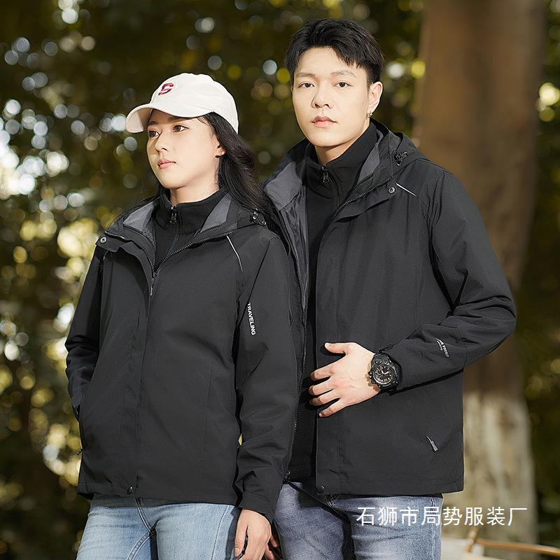 戸外突撃服三合一男女カップルの作業服二点セット防水防風登山服フード付きコート