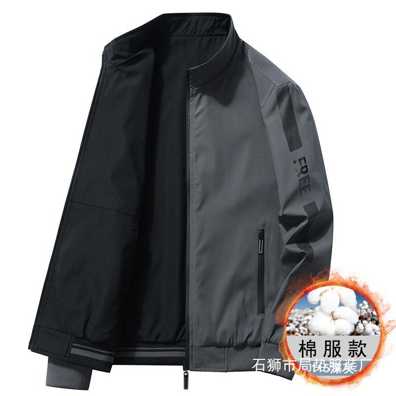 秋冬に綿を入れた男性は両面にカジュアルな立襟ジャケットを着て中年の男性コートの上着のファッションブランドの野球服を着ている