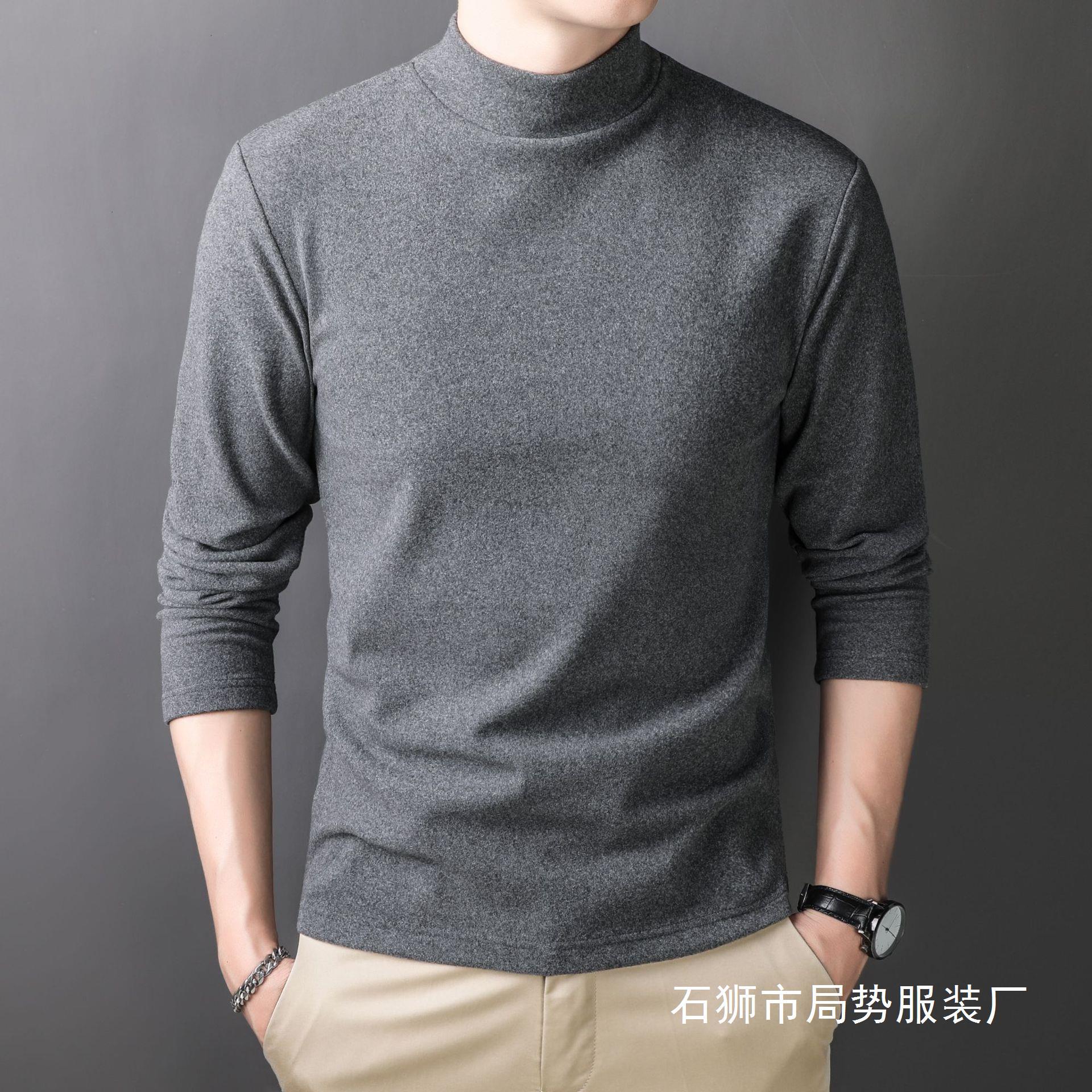 半高襟徳絨毛保温底シャツ2023秋の中青年男性の大きいサイズは長袖tシャツ秋冬モデルに合わせています。