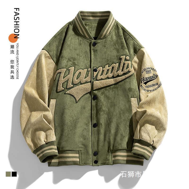 2023春秋新型レトロ文字刺繍コートゆるいカップルジャケット潮牌男性スエード野球服