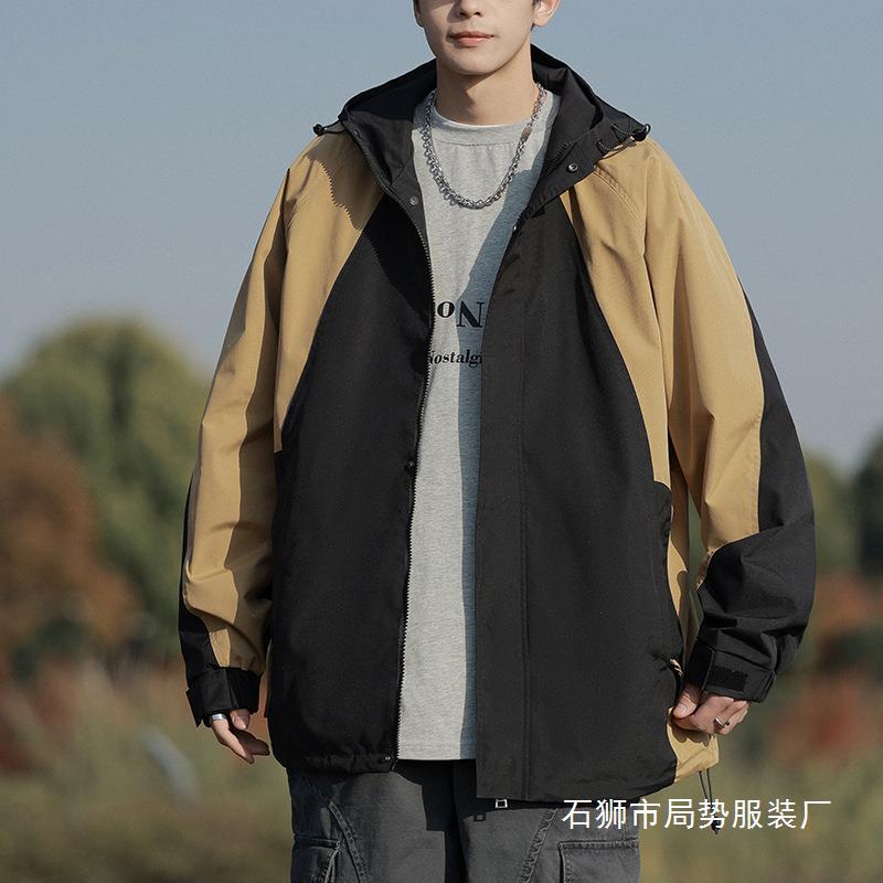 コートの男性のタイプの2023秋の新型の帽子のファッションのブランドの工装のジャケットは色を合わせてカジュアルでゆったりしています。