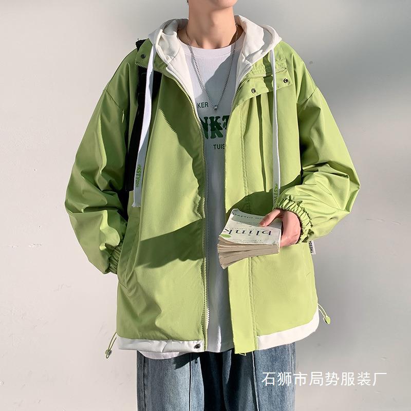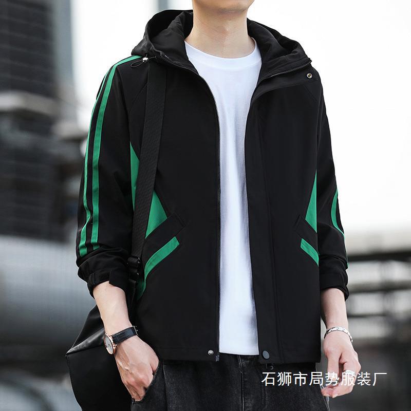 新しい春と秋の男性ジャケット男性カジュアルコート男性服insファッション帽子付きスポーツスーツ男性