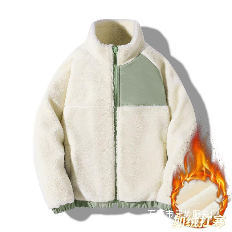 越境秋冬の羊の小毛の女性のベルベットの厚いジャケットのカップルのカジュアルなカシミヤの立襟のゆったりした保温のコートの男