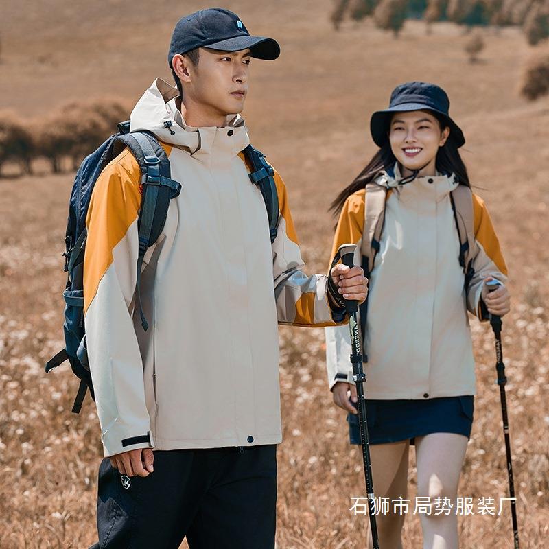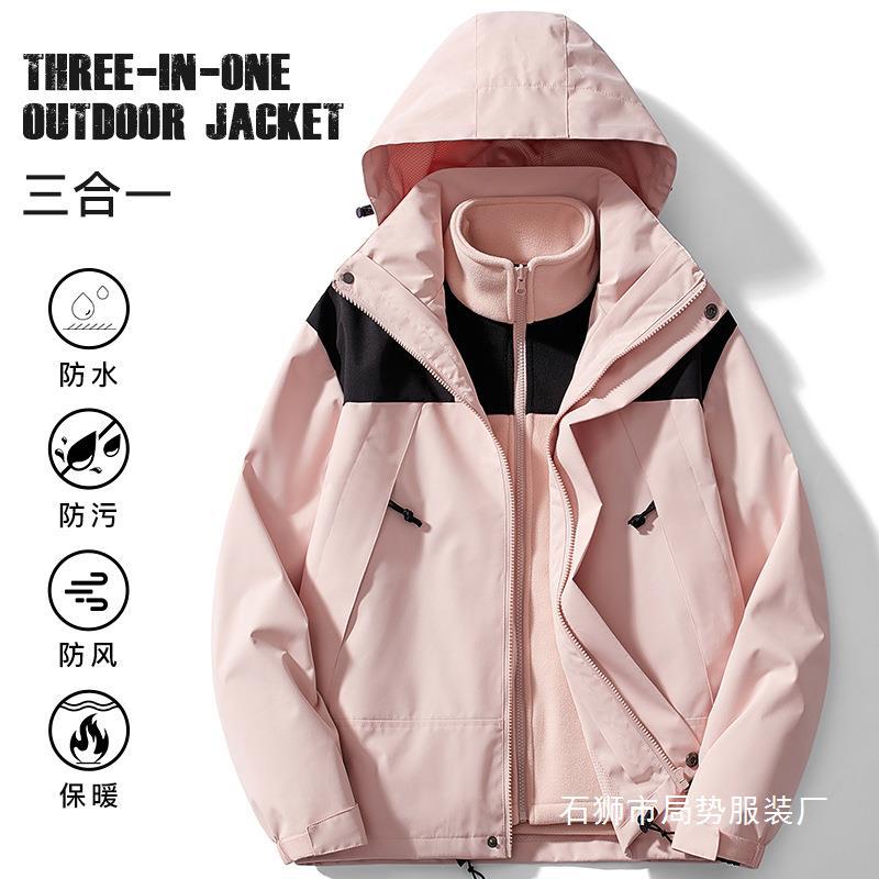 戸外突撃服三合一男性モデル秋冬厚手コート取り外し可能防風防水二点セット登山服女性