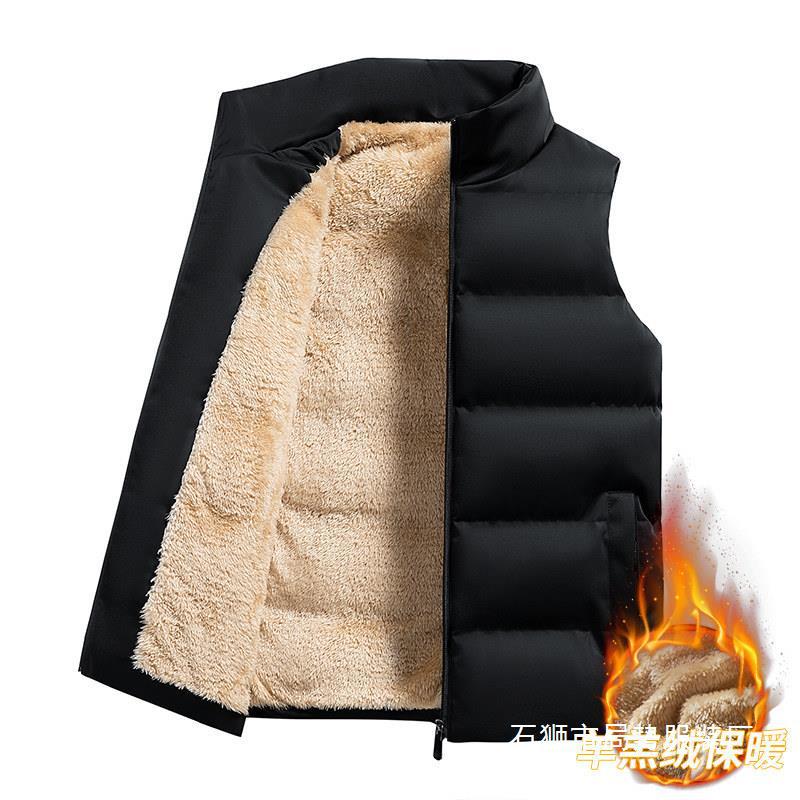 秋冬男性ビジネスカジュアル馬甲韓国版立襟大サイズベスト綿服ベルベット保温ダウン綿馬甲男