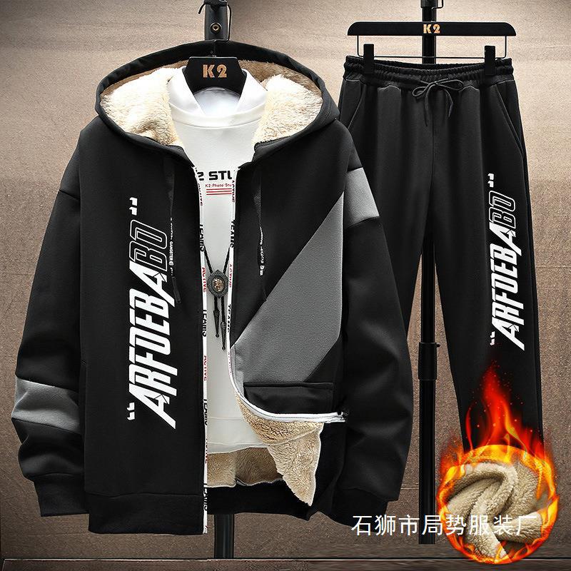 青少年レジャースポーツスーツ冬ベルベット厚手ジャケット2点セット学生ファッションガーディアン保温スーツ