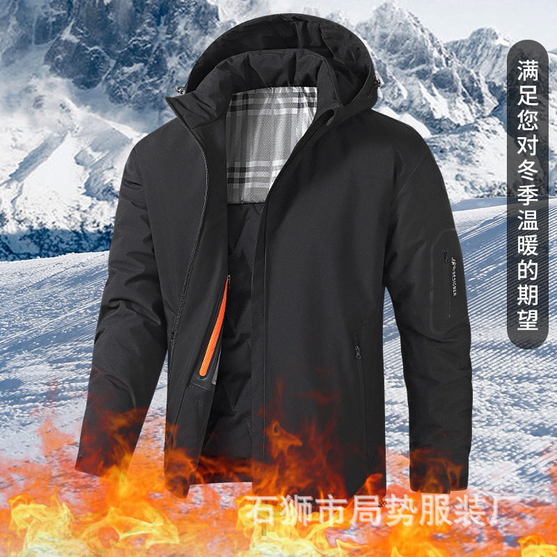 2025冬のカップルの突撃服の男性とベルベットの厚いファッションレジャー防水スポーツ登山服の帽子付きコートの男性