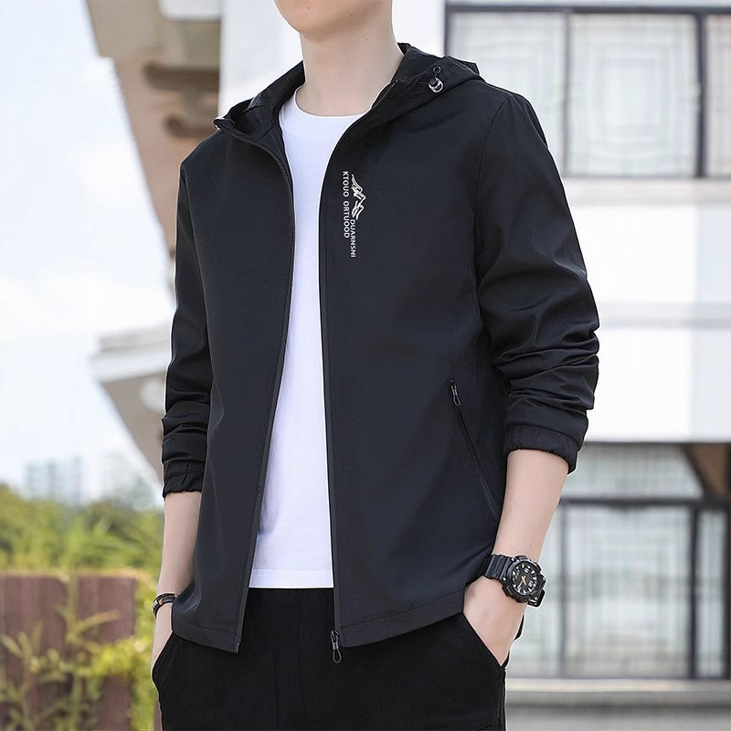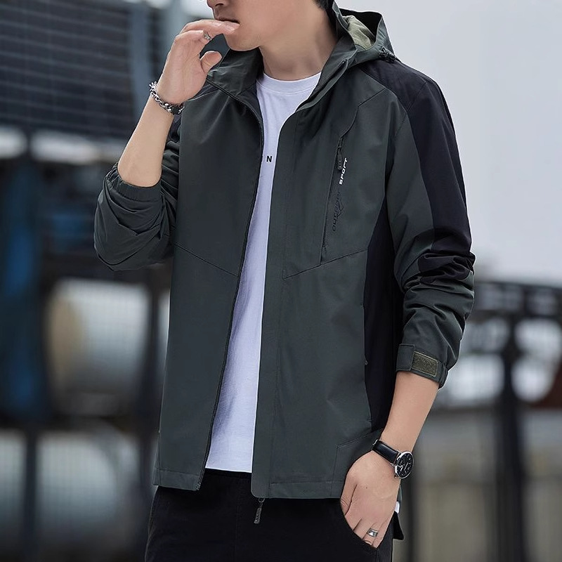 2023新型ジャケットカジュアルコート男性春と秋の帽子付き韓国版ファッション修身ジャケットファッション服