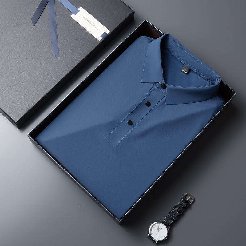氷糸poloシャツ夏男性ビジネス襟半袖薄い純色速乾tシャツカジュアル無痕上着男