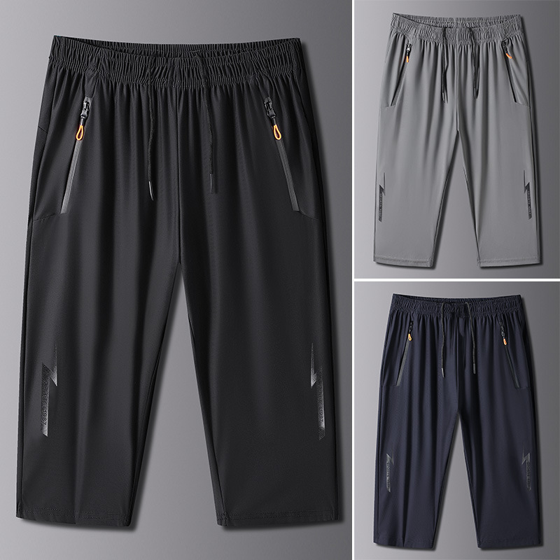 氷糸男性七分ズボン夏の薄いサイズのスポーツレジャー速乾ズボンのゆるい半ズボンのファッションビーチパンツ