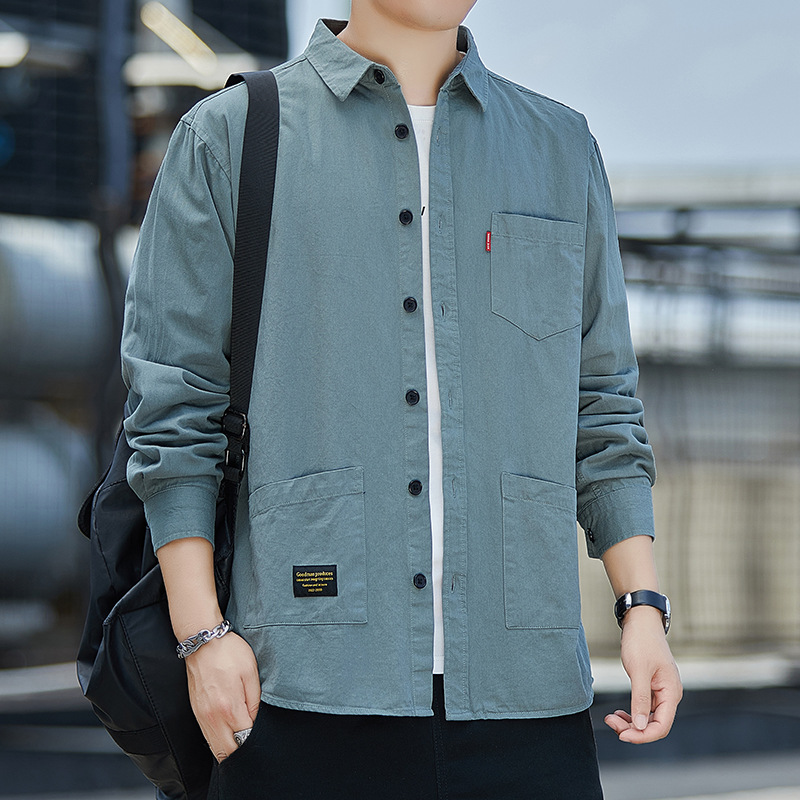 2023男性長袖シャツ秋の新型韓国版ファッション綿質シャツカジュアルコート男性百合上着男性