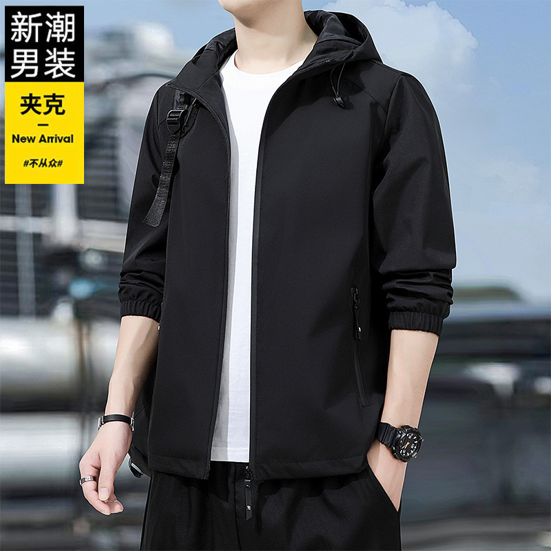 男性コート2023春秋の新型韓国版ゆるいカジュアルジャケット男性ファッションブランドフード付きジャケット男性服