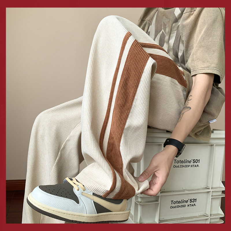 2023春秋のゆったりとしたカジュアルパンツの男性九分のズボンの縁のコーデュロイのまっすぐな筒の衛のズボンの青少年の百合のズボン