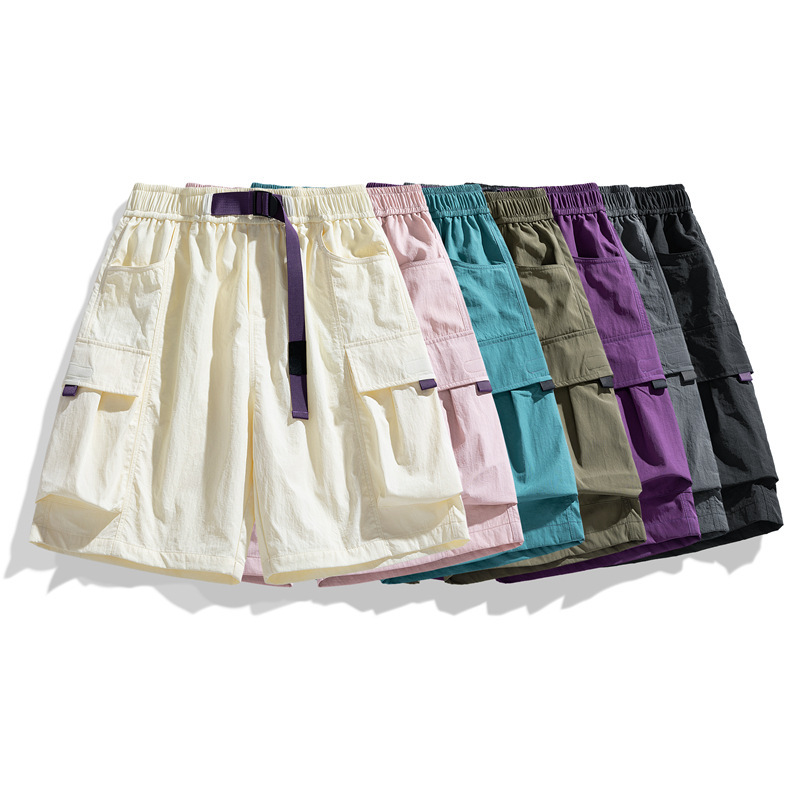 2025 クロスボーダーアマゾン夏の新作カーゴショーツアイスシルク速乾ショーツメンズアメリカンミッドパンツマルチポケット
