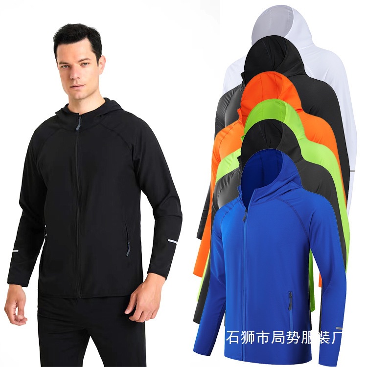 夏のカップルランニングジャケットスポーツフード付き日焼け防止服メンズ速乾性反射フィットネス服男性と女性のための同じスタイルの日焼け防止シャツ
