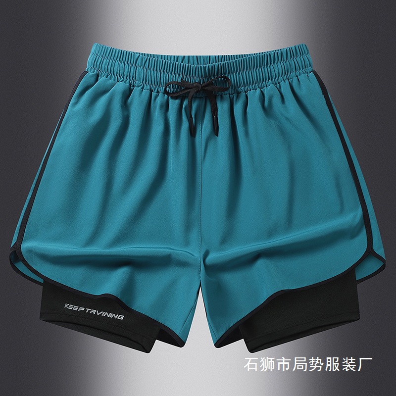 2025 新しい夏の男性用 3 点パンツ、スポーツランニング、露出防止二重層、男性と女性のカップルフィットネス速乾性ショーツ