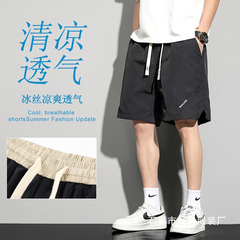 アイスシルクショーツメンズ夏ルーズ大きいサイズ弾性ミッドパンツ速乾ストレートカジュアルパンツランニングスポーツパンツ